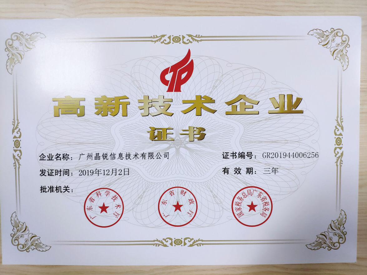 广州晶锐信息技术有限公司(以下简称“公司”)成立于2009年,是中山大学花都产业科技研究院支持下的一家集研发、生产、销售、服务于一体的国家高新技术企业、产学研成果转化示范企业。